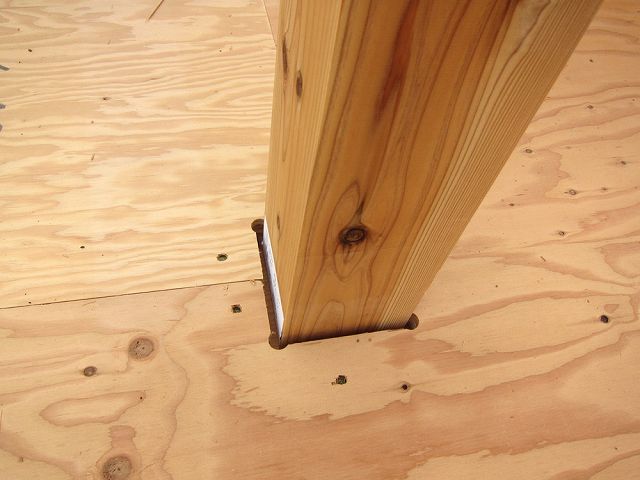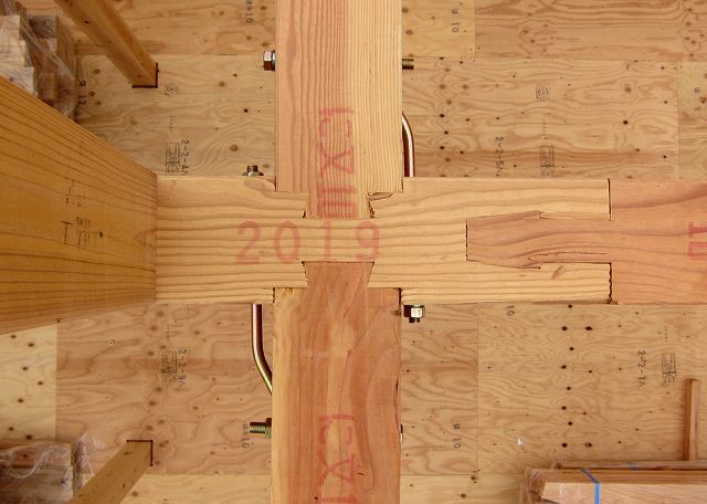 在来軸組構法の継手や仕口部分を梁受け金物、ほぞパイプを使ってジョイントしていくものです。金物の留め具はドリフトピンやボルトが使用されます。断面の欠損を少なくすることや強度にばらつきがないということで、集成材、及び、外部の面材(筋違を用いない)とのセットで使われます。総2階に近い形で、間崩れがない部屋を組み合わせるような、シンプルな構造躯体の住宅では高い耐震強度を得られます。